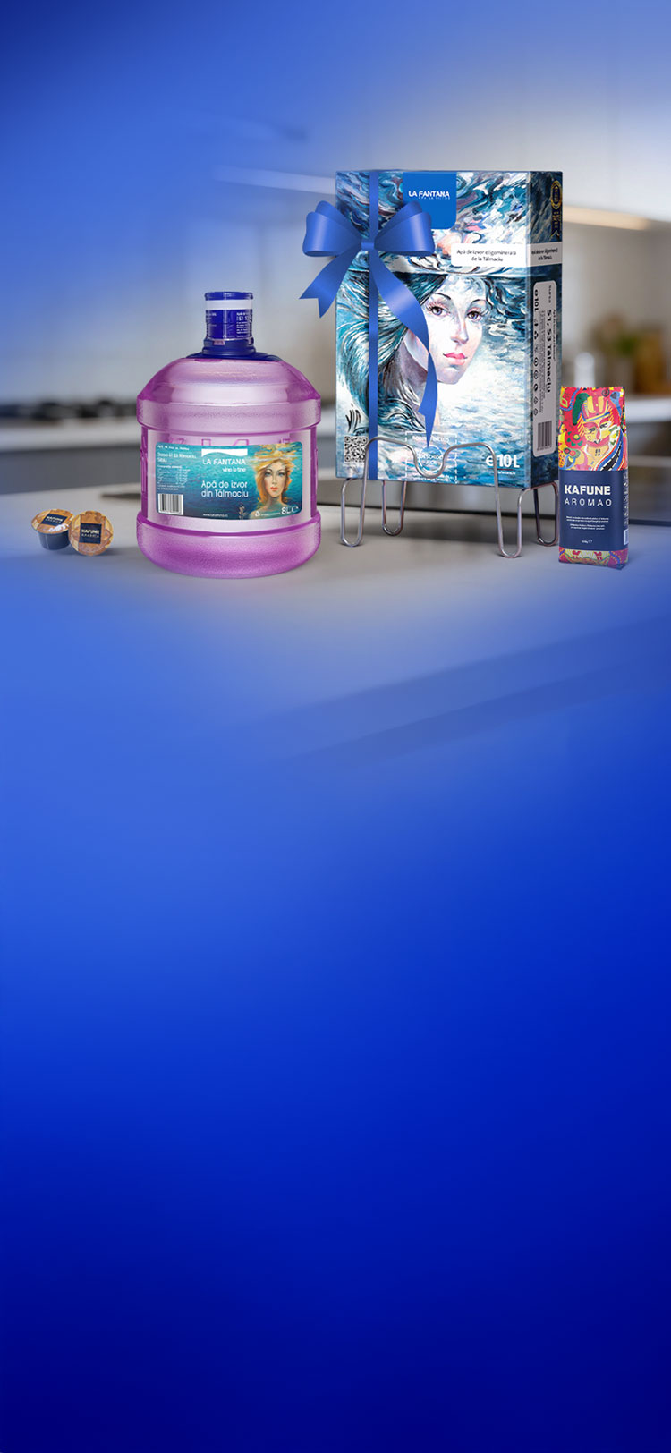 Venim la tine acasă cu filtre performante pentru apă sigură, aparate pentru cafea, dar și apă îmbuteliată în sticle mari din grijă pentru mediu.