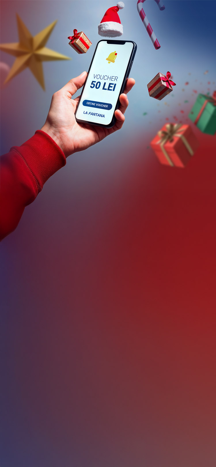 Promoția nu se cumulează cu alte oferte și nu se aplică abonamentelor. Voucherul va fi trimis pe adresa de e-mail în perioada 22-24 decembrie și va putea fi folosit o singură dată, între 12-18 ianuarie 2026, pentru comenzi de peste 200 LEI.