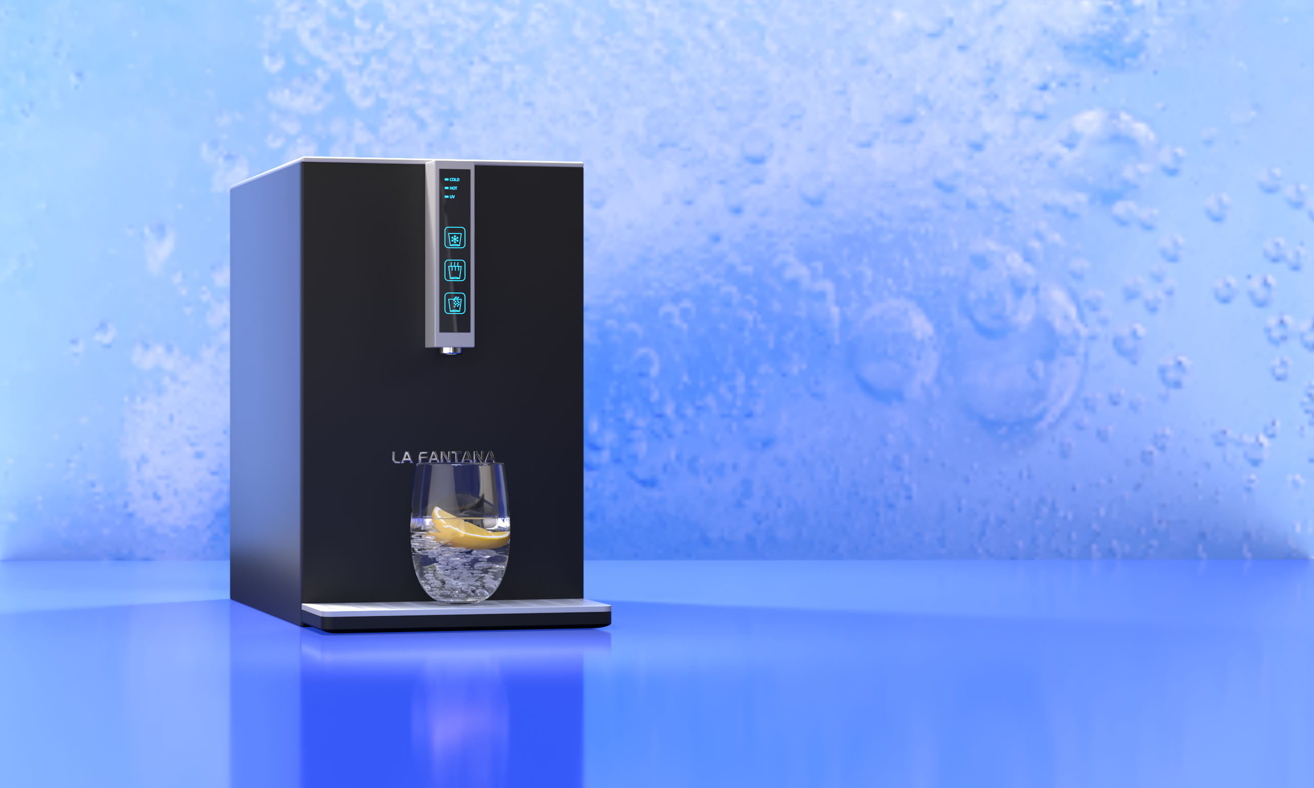 Watercooler cu filtre apă | CARBOPURITY BLACK Abonament: purificator apă (apă carbonatată, rece sau fierbinte, sterilizare UV) + servicii incluse