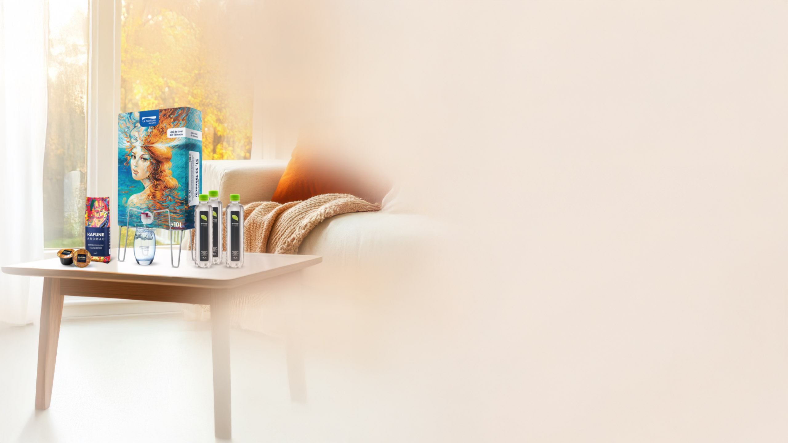 Venim la tine acasă cu filtre performante pentru apă sigură, aparate pentru cafea, dar și apă îmbuteliată în sticle mari din grijă pentru mediu.