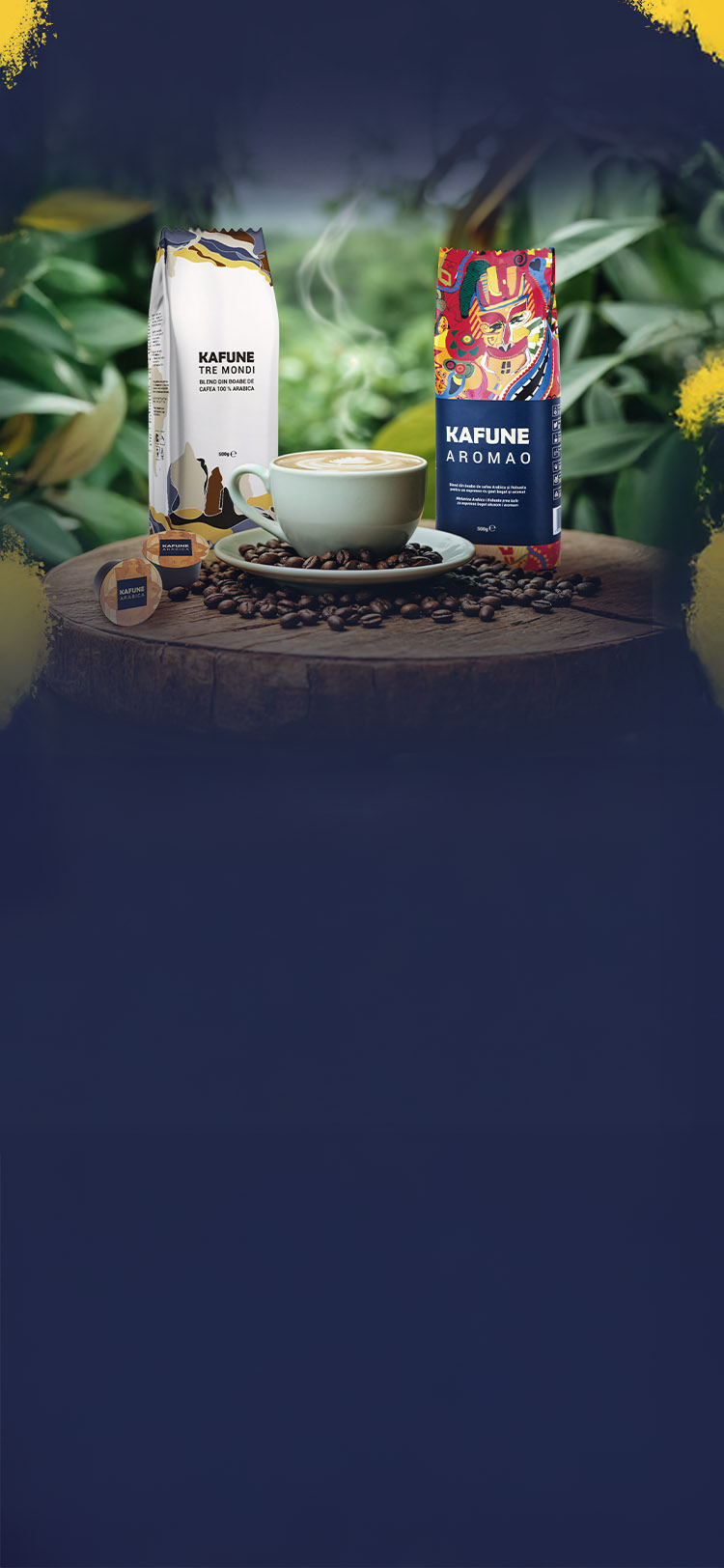 Espressor în custodie și 100 de capsule premium Kafune livrate la ușa ta în fiecare lună